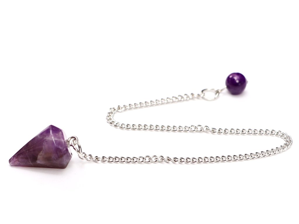 Ametyst to kamień intuicji, spokoju i ochrony duchowej. Pomaga w medytacji, równoważeniu emocji i łączeniu się z wewnętrznym przewodnictwem. Jest idealnym narzędziem do pracy z wahadełkiem.