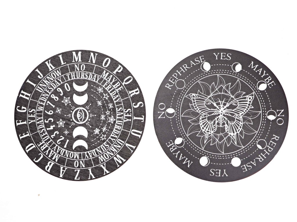 🔘 2 okrągłe tabliczki wróżebne – średnica każdej 15 cm, grubość 2,5 mm