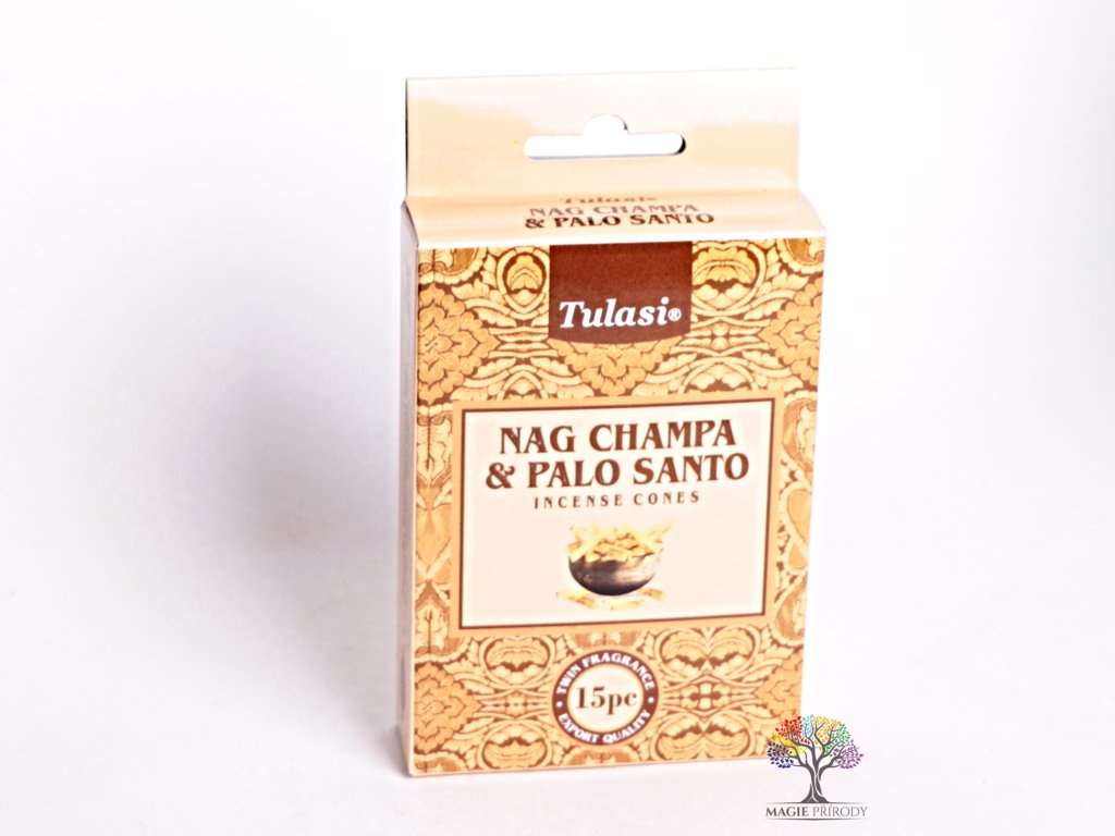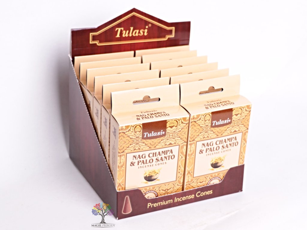 Indické vonné ftišky - kužílky Tulasi Nag Champa Palo Santo - svaté dřevo s rituální vůní posvátného jihoamerického dřeva.
