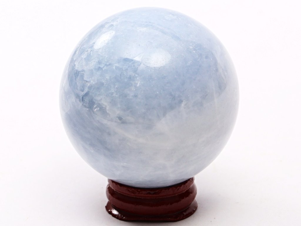 Kalcyt niebieski kulka 60 mm 291 g naturalny kamień + drewniana podstawa #K1021