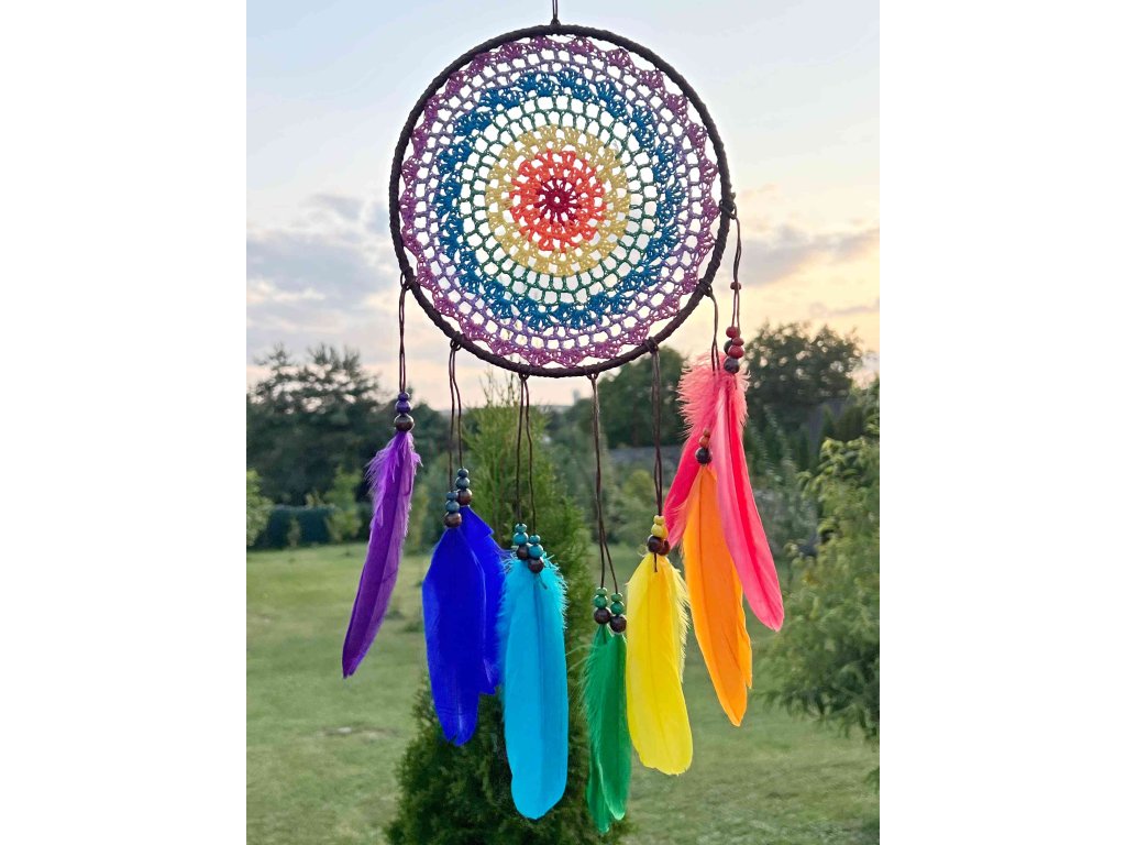 Velký duhový lapač snů s háčkovaným středem #ZB400