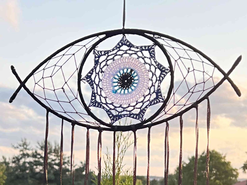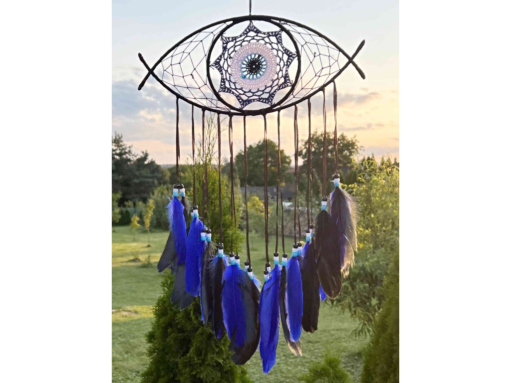 Lapač snů Oko ochrany – modro-bílý háčkovaný talisman #ZB405