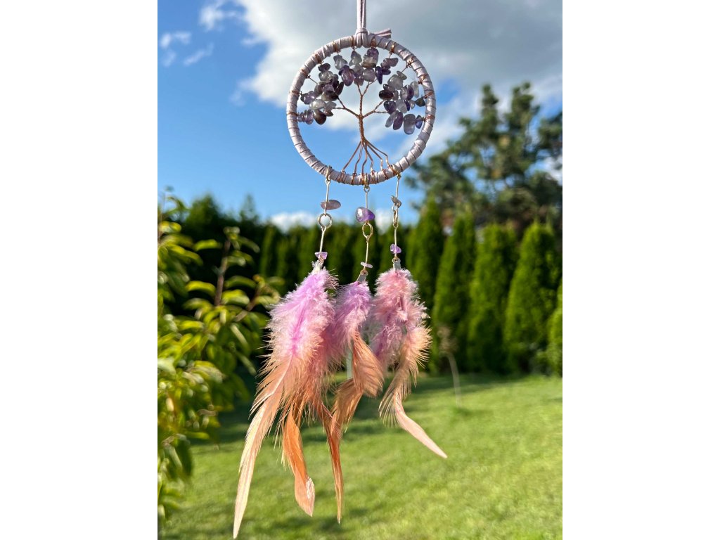 Lapač snů Strom života s ametystem a jemným peřím #ZB379