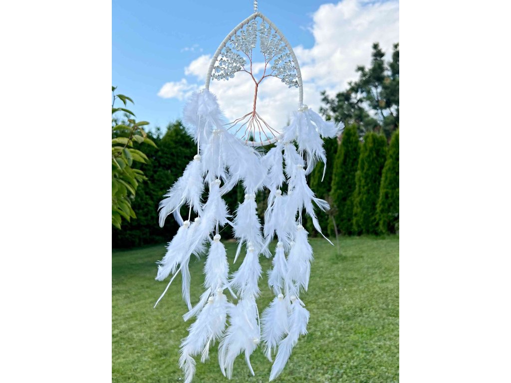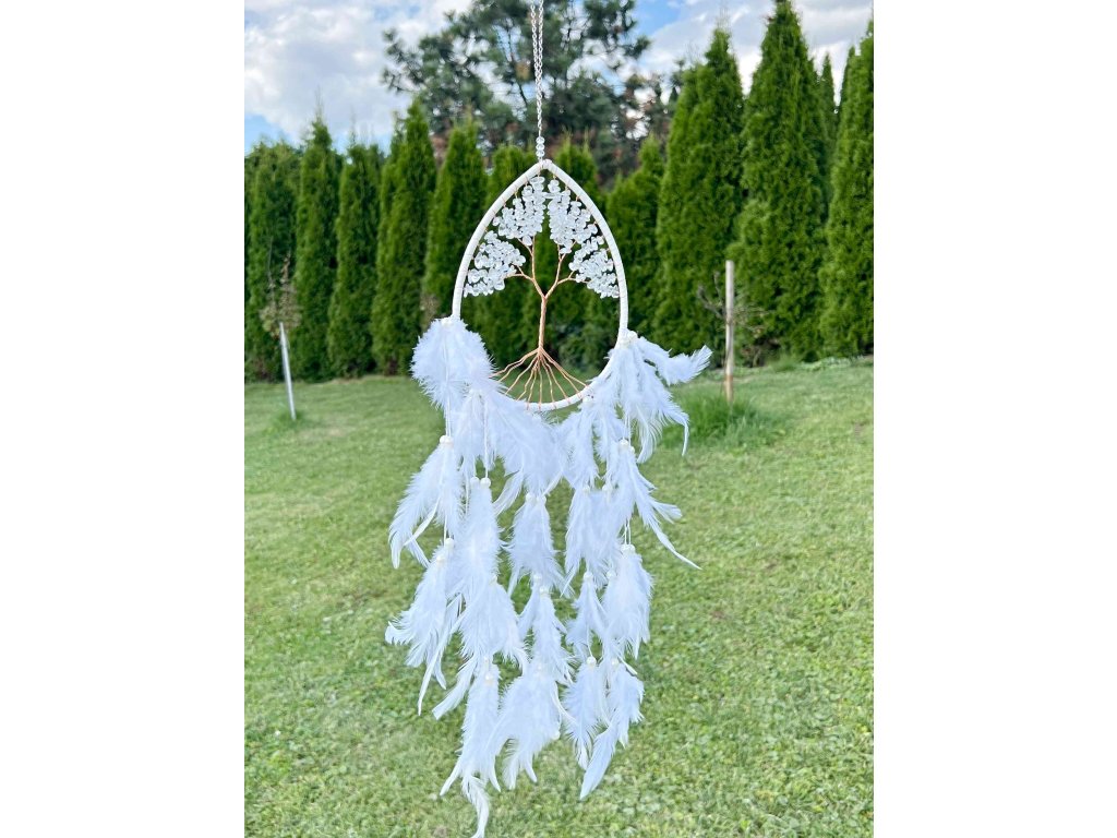 Lapač snů Strom života s křišťálem – bílý kapkový rám #ZB386