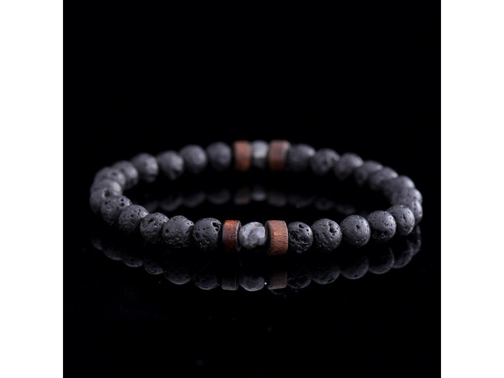Pánský náramek Láva s Larvikitem 7 mm kuličky #1110