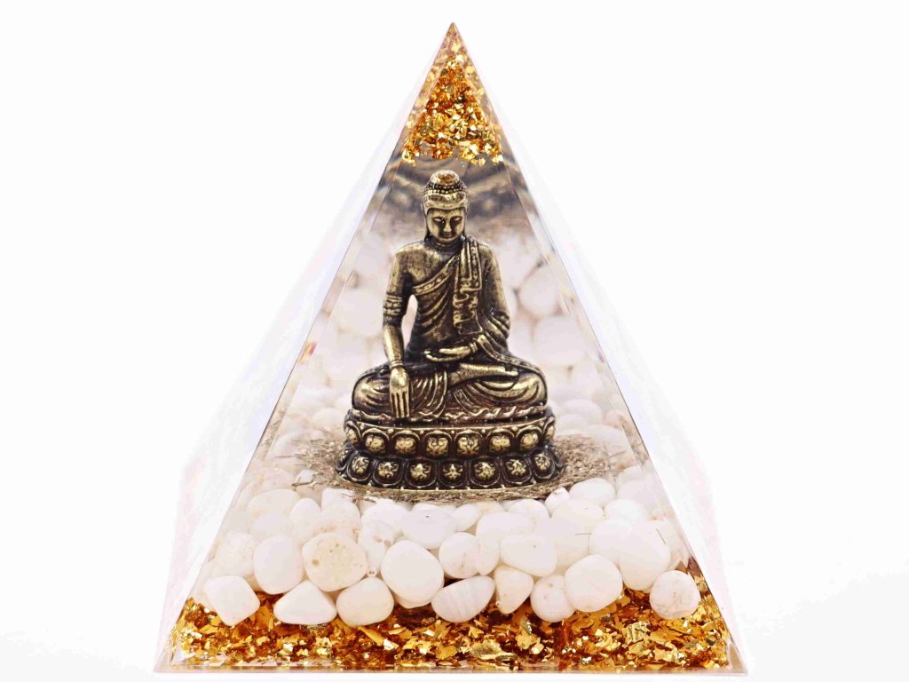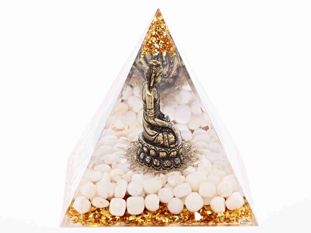Tato ručně vyráběná orgonitová pyramida je ideální volbou pro ty, kdo chtějí vytvořit harmonický a klidný prostor. Obsahuje sošku Buddhy, symbol duchovního klidu a moudrosti, a přírodní jadeitové kameny, které podporují hojnost, vyrovnanost a vnitřní harmonii.