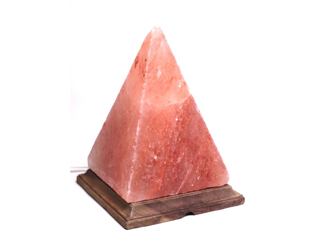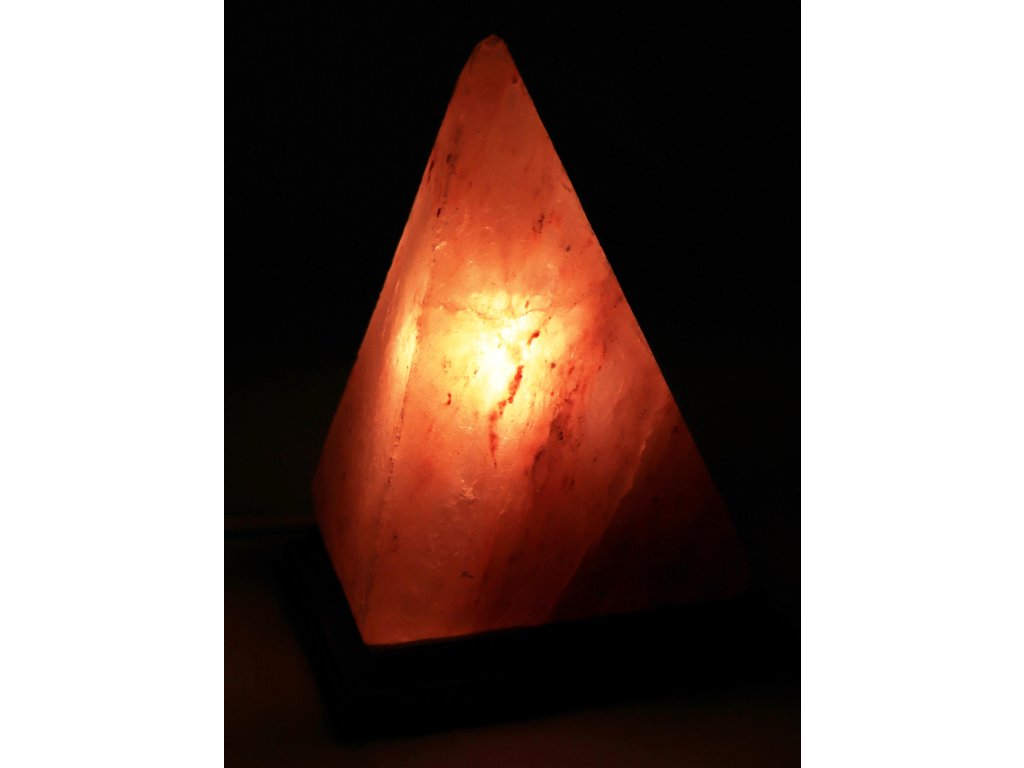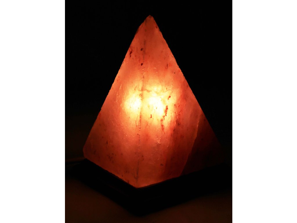 Ručně vyráběná lampa z masivního solného krystalu ve tvaru Pyramidy. Elektrická solná lampa navozuje příjemnou atmosféru a blahodárně na lidský organismus. Podstavec solné lampy je z masivního dřeva. Solný krystal funguje jako ionizátor vzduchu a tato ionizace se při zahřátí zesiluje. V blízkosti solné lampy zažíváme pocit podobný jako v u vodopádů nebo u moře. Tím pádem má - při (astma), problémech s oběhovým systémem, imunitu organismu a zpomaluje stárnutí.