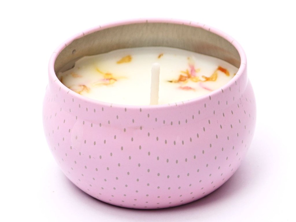 Świeca sojowa w metalowym pojemniku o zapachu piwonii #SV121
