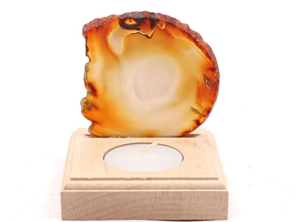 Achátový plát - svícen z achátového plátu na dřevěném podstavci