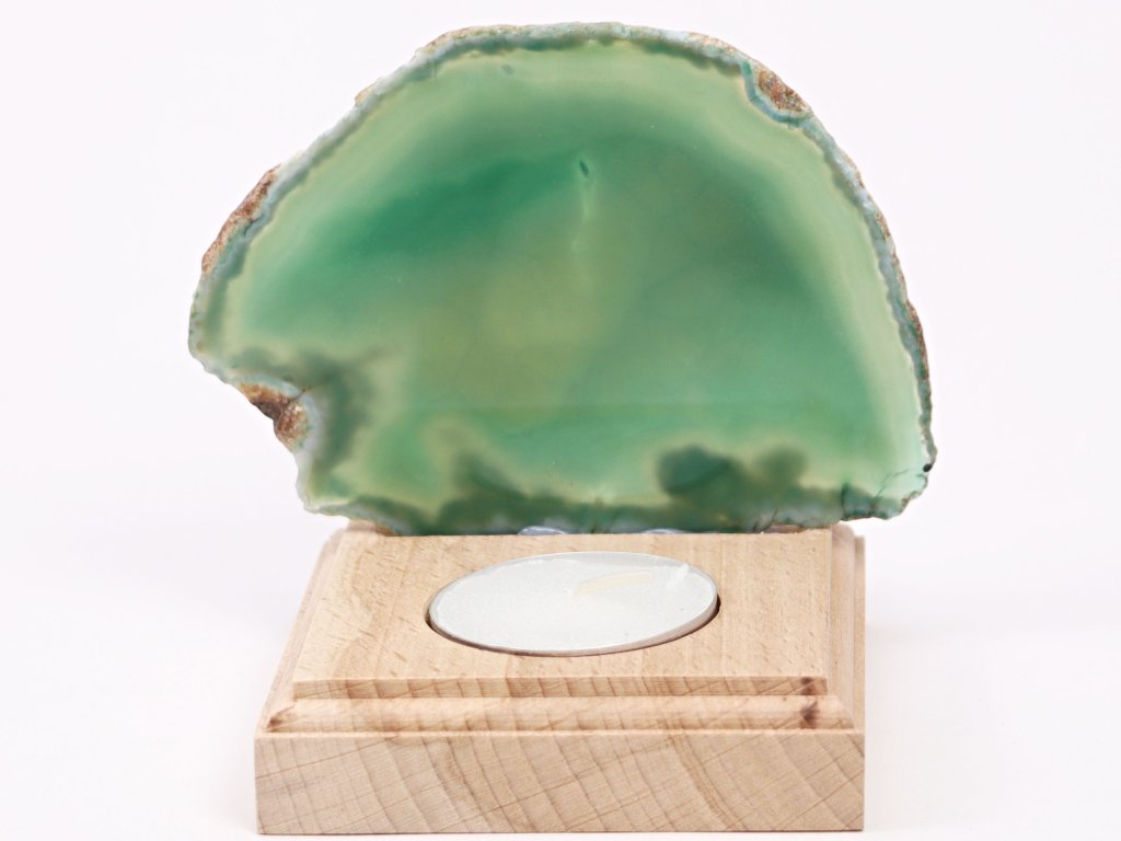 Achátový plát - svícen z achátového plátu na dřevěném podstavci