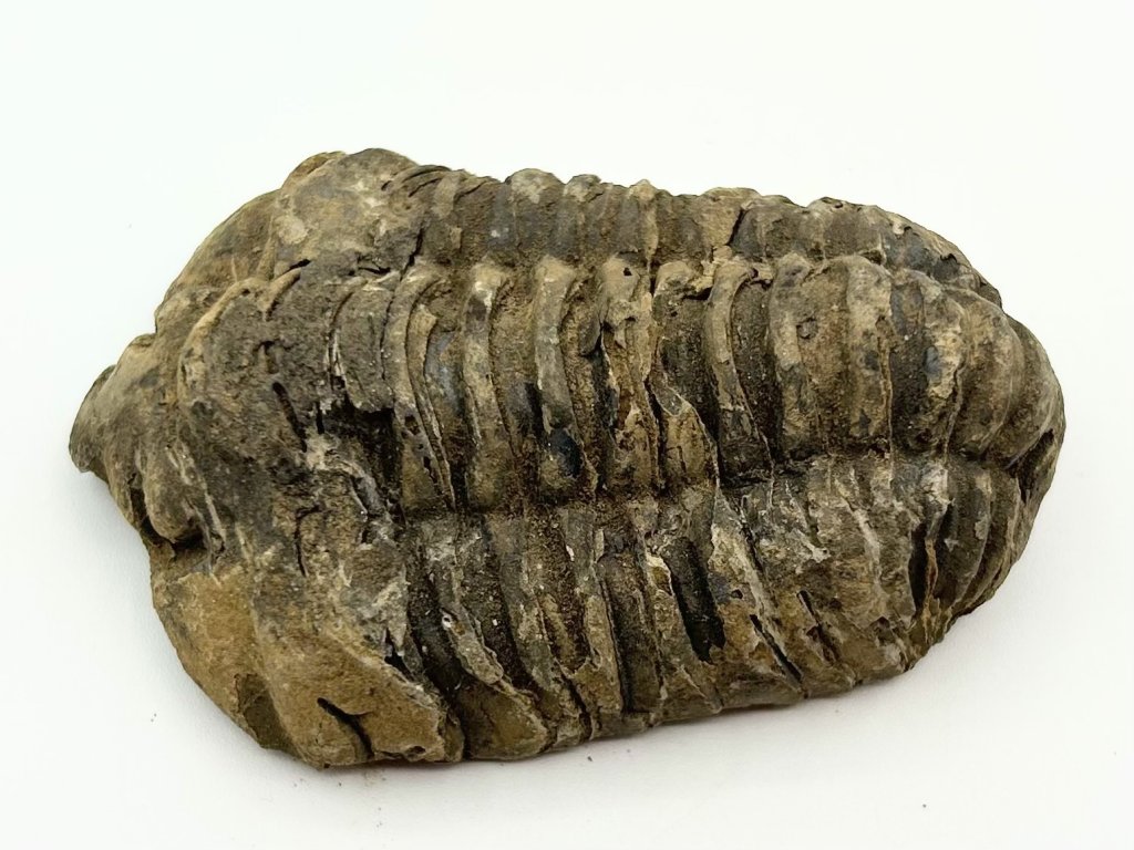 Zkamenělina trilobita rodu Calymene (Flexicalymene), pravěkého členovce podkmene trilobitomorpha.
