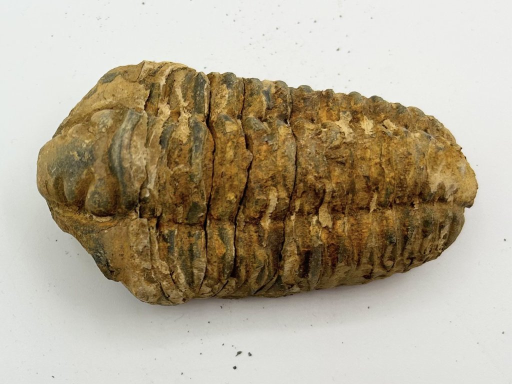 Zkamenělina trilobita rodu Calymene (Flexicalymene), pravěkého členovce podkmene trilobitomorpha.