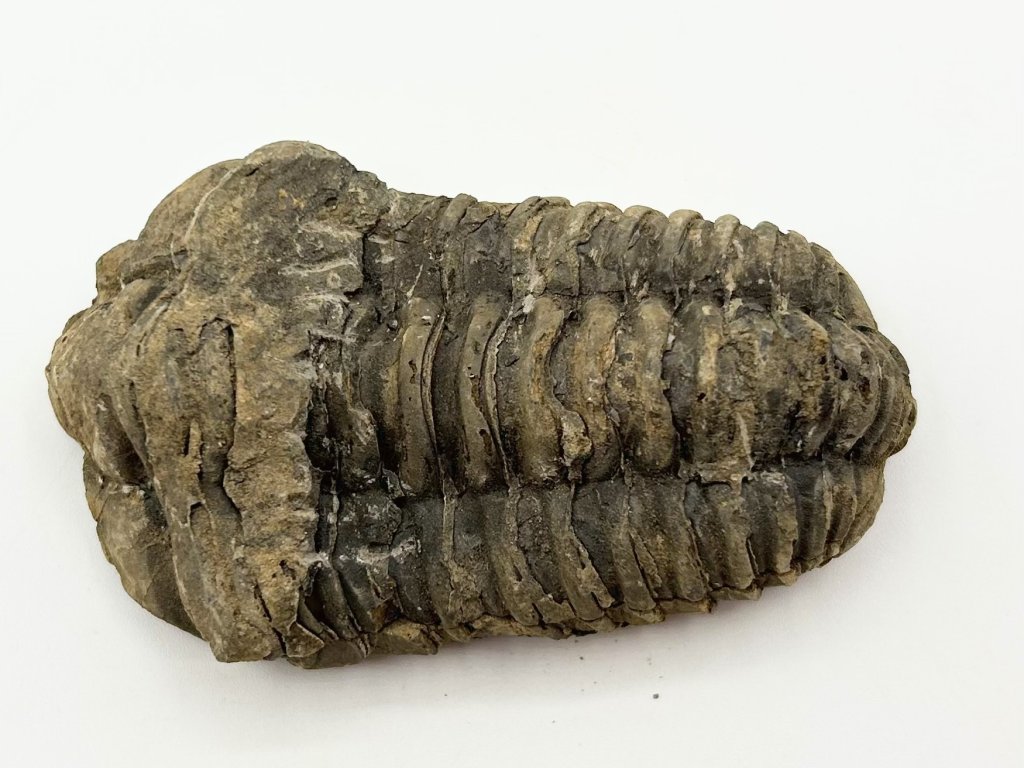 Zkamenělina trilobita rodu Calymene (Flexicalymene), pravěkého členovce podkmene trilobitomorpha.