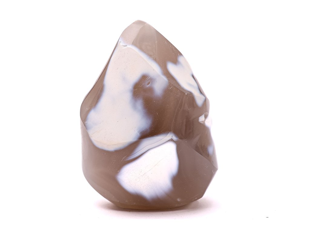 Plamen z přírodního achátu Orca je jedinečný minerál, který upoutá svým výrazným kontrastem černých, šedých a bílých odstínů připomínajících kresbu kosatky. Tento kámen byl ručně opracován do tvaru plamene, díky čemuž se stává nejen harmonizujícím prvkem, ale také originální dekorací pro váš domov či kancelář.