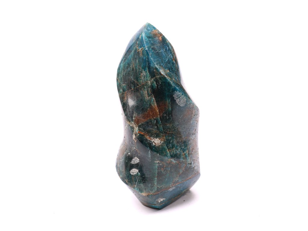 Tento krásně opracovaný plamen z modrého apatitu okouzlí svými živými odstíny modré, které připomínají hloubku oceánu. Plamen jako tvar symbolizuje energii, očistu a transformaci – v kombinaci s apatitovým kamenem působí jako silný zdroj inspirace a vnitřní harmonie. Apatit je známý jako kámen komunikace a sebedůvěry, podporuje tvořivost, motivaci a pomáhá otevírat mysl novým možnostem.