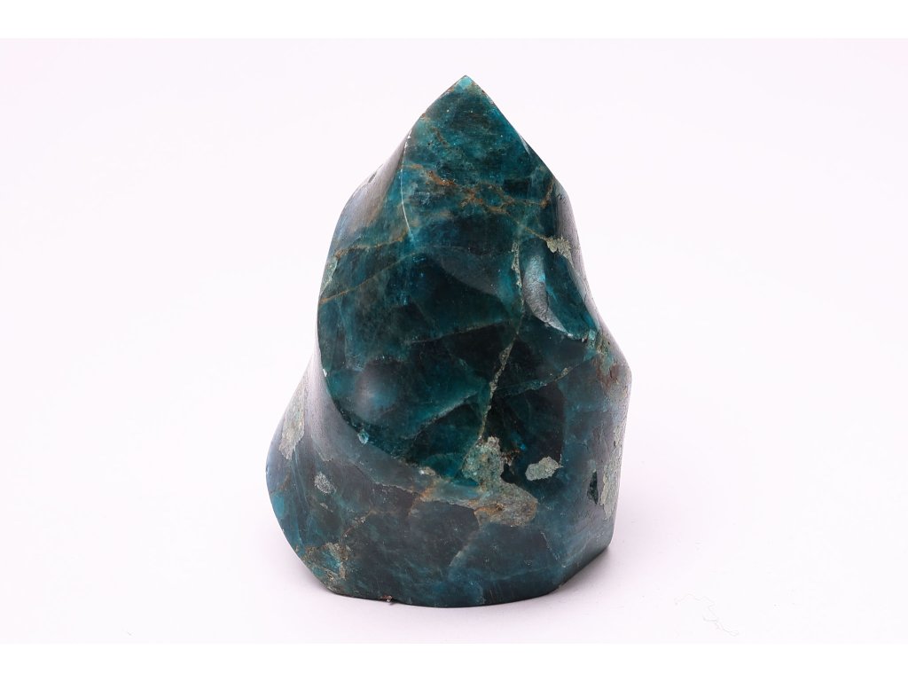 Tento krásně opracovaný plamen z modrého apatitu okouzlí svými živými odstíny modré, které připomínají hloubku oceánu. Plamen jako tvar symbolizuje energii, očistu a transformaci – v kombinaci s apatitovým kamenem působí jako silný zdroj inspirace a vnitřní harmonie. Apatit je známý jako kámen komunikace a sebedůvěry, podporuje tvořivost, motivaci a pomáhá otevírat mysl novým možnostem.