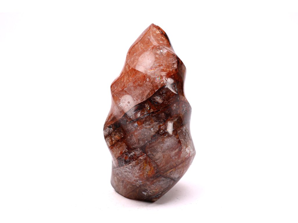 Plamen z ohnivého křemene – hematoidu – uchvátí svými sytými červenými a oranžovými tóny, které připomínají sílu ohně a energii životní síly. Hematoidní křemen spojuje očistnou sílu křišťálu s uzemňující energií hematitu, čímž podporuje odvahu, stabilitu a vnitřní rovnováhu. Každý plamen je jedinečným originálem, který v sobě nese krásu i mocnou energii přírody.