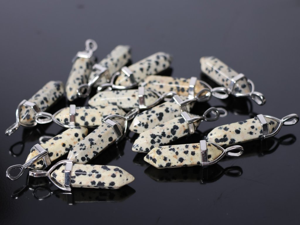 Přívěsek Jaspis Dalmatin krystal oboustranný 30x8x8 mm #ZM159 stříbrná barva