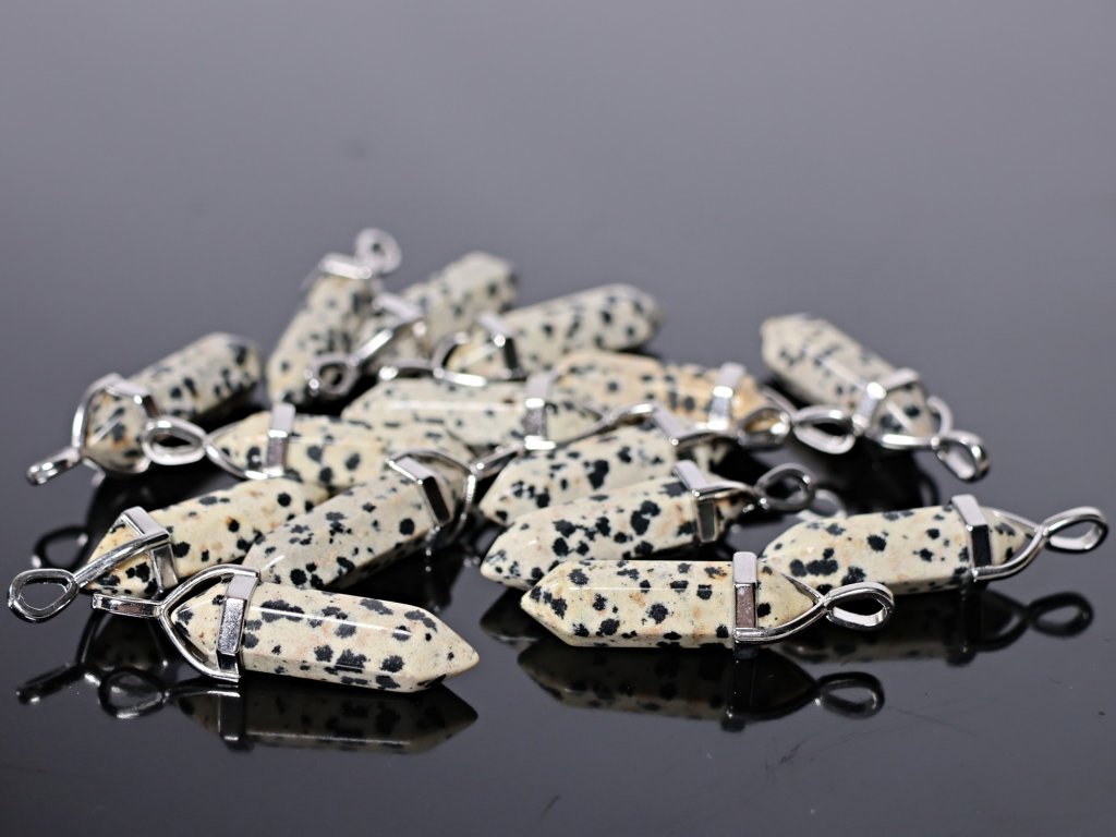 Každý přívěsek z jaspisu dalmatin je originální přírodní krystal s hravou kresbou a podporující energií.