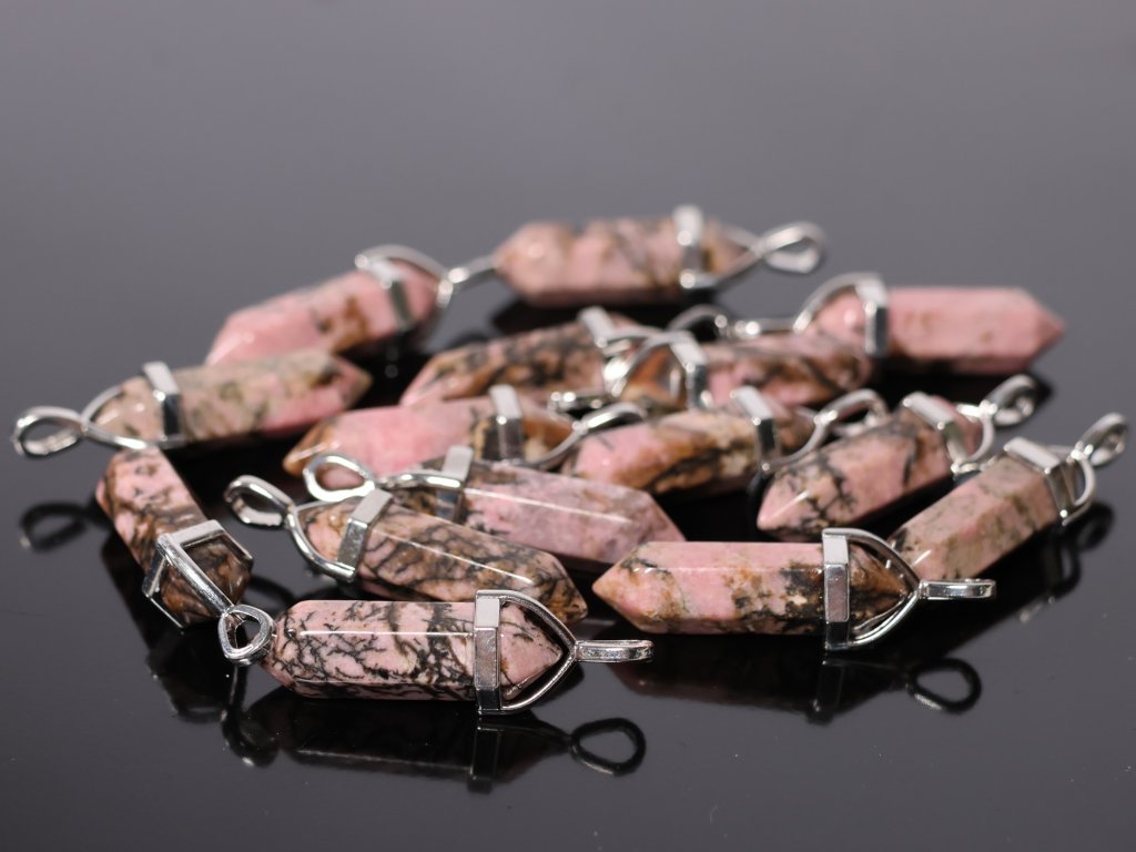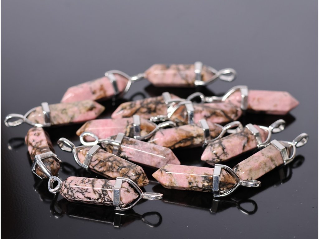 Přívěsek Rodonit krystal oboustranný 30x8x8 mm #ZM155 stříbrná barva