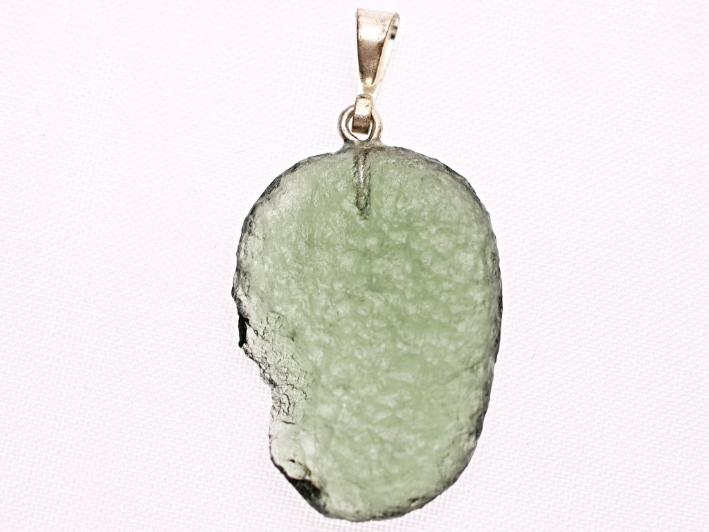 Nechte se okouzlit tajemnou energií a nadpozemskou krásou pravého českého vltavínu. Tento jedinečný přívěsek v sobě nese sílu meteoritu, který před miliony let dopadl na zem a stvořil tento vzácný zelený tektit. Jeho povrch je posetý charakteristickou skulptací – vrásněním, které vypráví příběh jeho ohnivého zrodu. Každý záhyb a každý odstín zelené je dílem přírody, které nikdy nemůže být zopakováno.