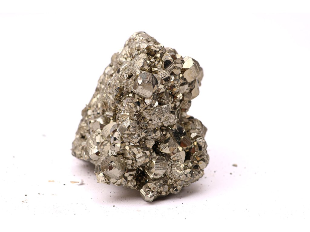 💎 Krystaly pyritu mají ostře řezané hrany, často ve formě kostek nebo dalších geometrických tvarů, které vznikly přirozenou cestou. Každý kus je originál – s unikátním uspořádáním krystalů, strukturou i odstínem.