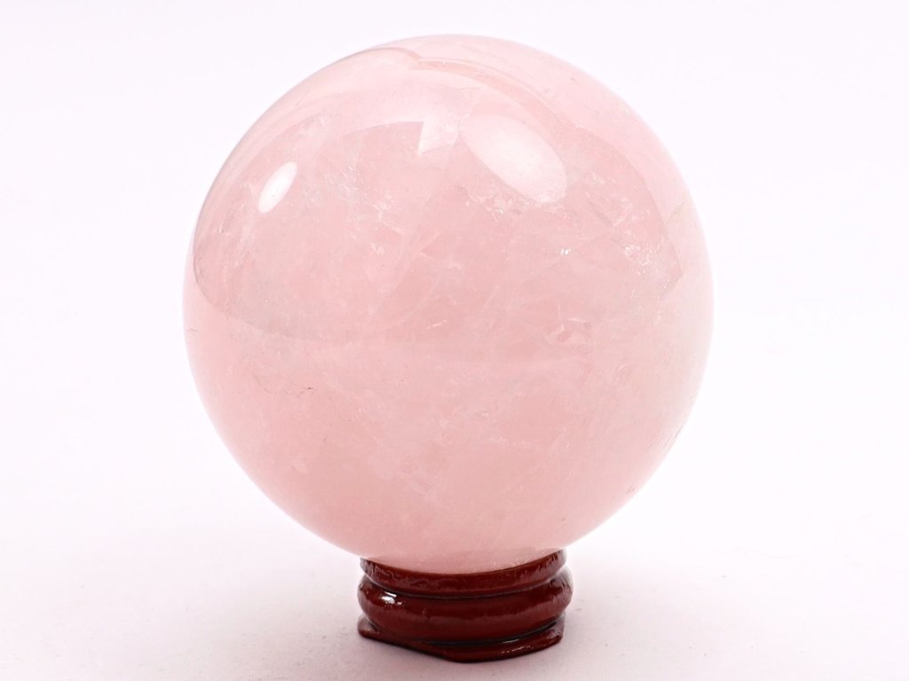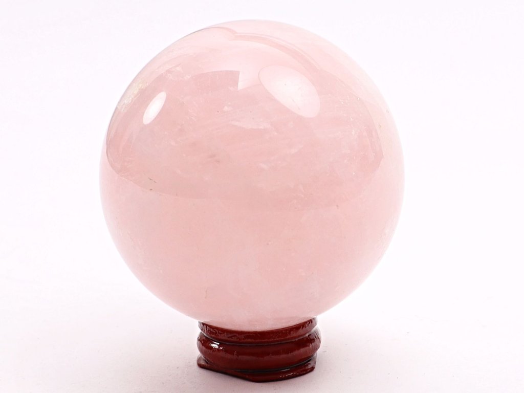 Růženín koule 72 mm 524 g přírodní kámen + dřevěný podstavec #B126