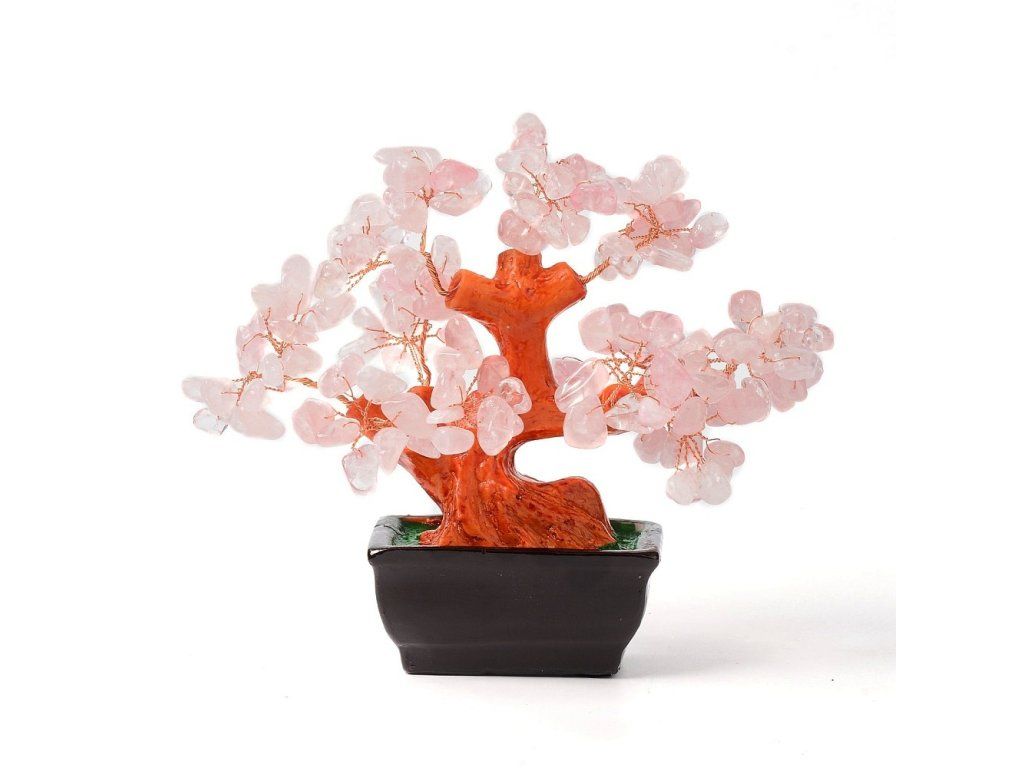 Dekorativní bonsai stromek z přírodního růženínu je krásným doplňkem do interiéru. Drobné růžové kamínky připomínají listy stromu a vytvářejí jemný, romantický a uklidňující vzhled. Růženín je často spojován s láskou, něhou a pozitivní energií.