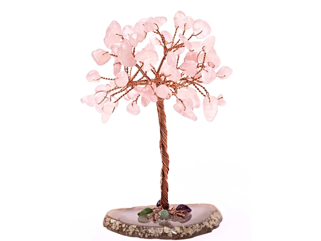 Stromek štěstí z růženínu na achátové základně