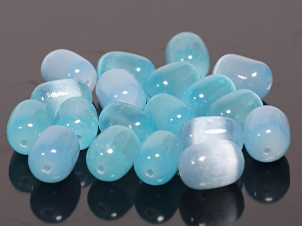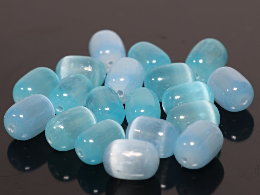 Světle modrý selenitový valounek 8x12 mm – dobarvovaný korálek