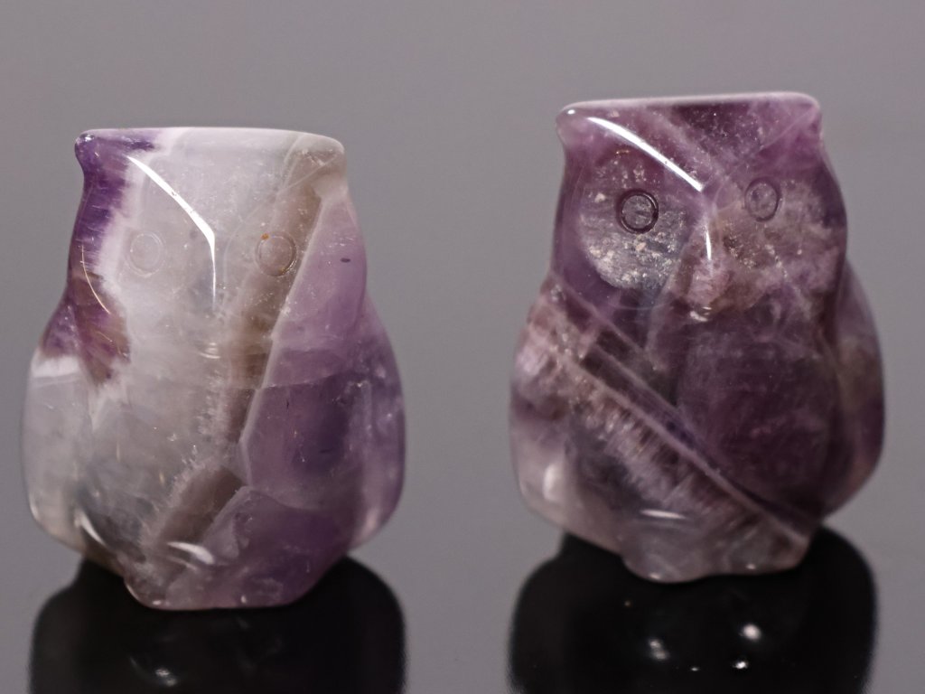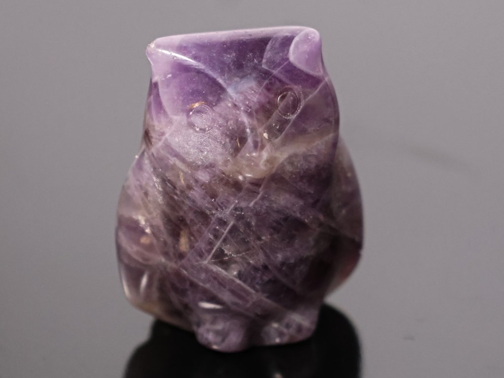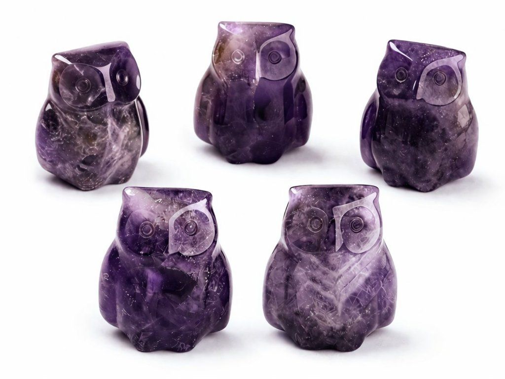 Figurka sovy vyrobená z přírodního ametystu je krásným symbolem moudrosti, intuice a vnitřního klidu. Ametyst je oblíbený kámen spojovaný s harmonií, ochranou a duchovní rovnováhou, a v podobě drobné sovy se stává nejen dekorací, ale i jemným talismanem.