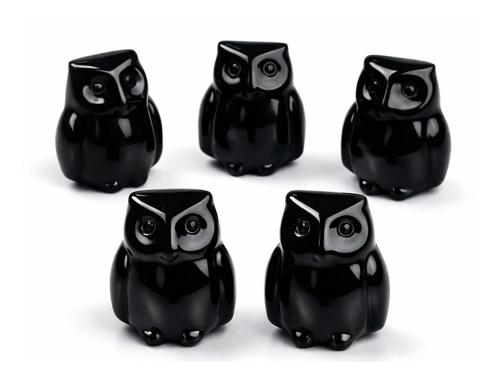 Figurka sovy vyrobená z přírodního černého obsidiánu je působivým symbolem moudrosti, ochrany a vnitřní síly. Obsidián je ceněný kámen spojovaný s očistou, uzemněním a ochranou před negativní energií. V podobě drobné sovy se tak stává nejen elegantní dekorací, ale i osobním talismanem.