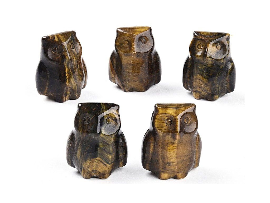 Sova z přírodního kamene – Tygří oko 28 × 22 mm