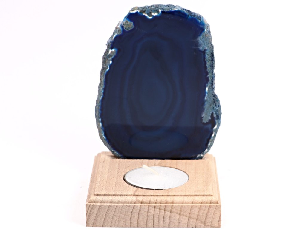 Achátový plát - svícen z achátového plátu na dřevěném podstavci