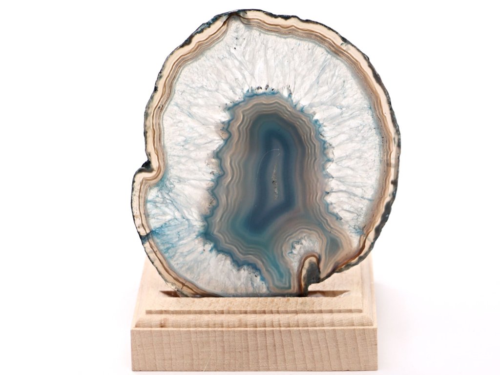 Achátové pláty jsou oboustranně leštěné. Přírodní kresba achátů vynikne při pohledu proti světlu, nebo když za něj umístíte svíčku.