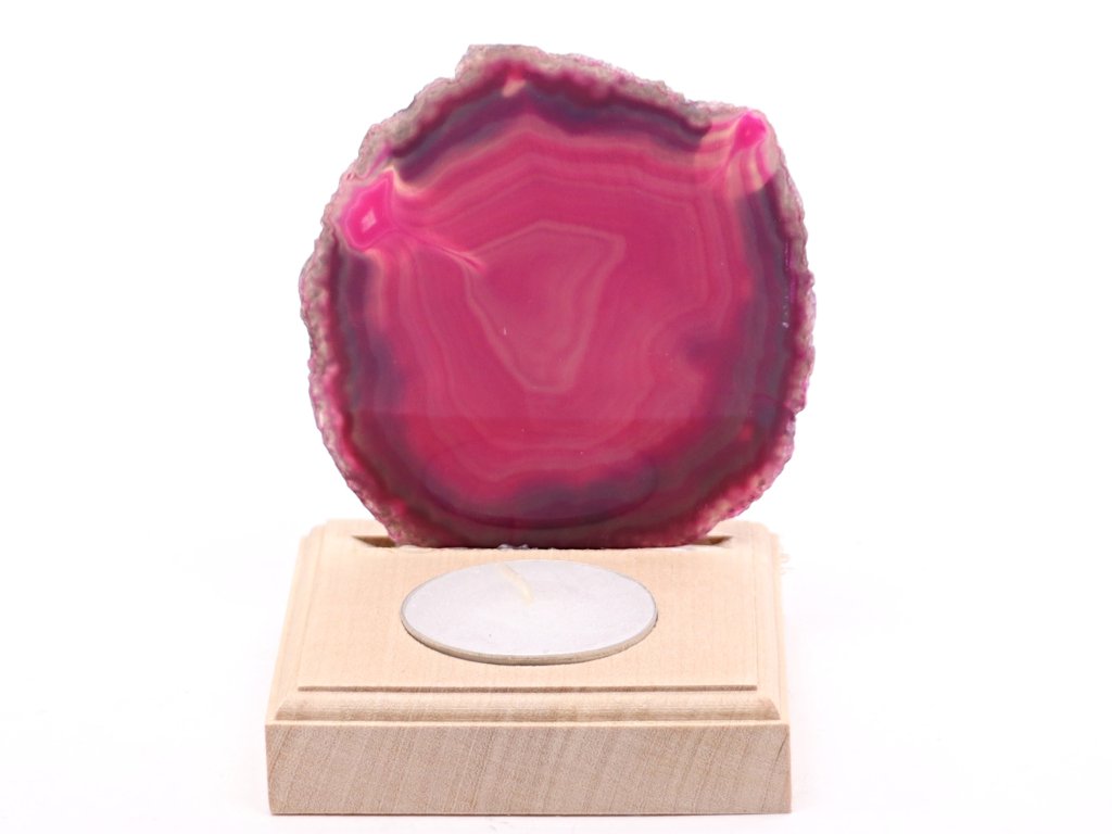 Achátový plát - svícen z achátového plátu na dřevěném podstavci