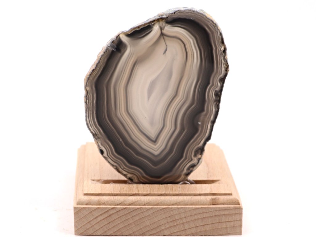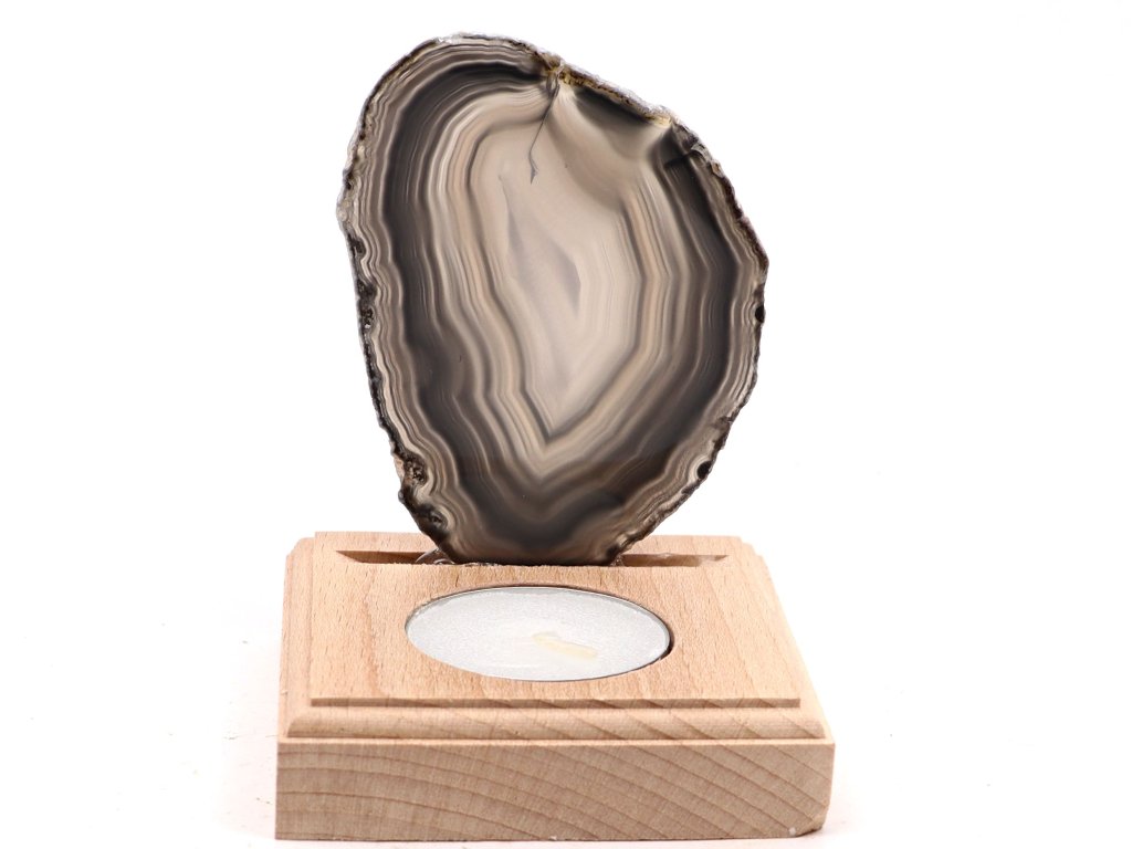 Achátový plát - svícen z achátového plátu na dřevěném podstavci