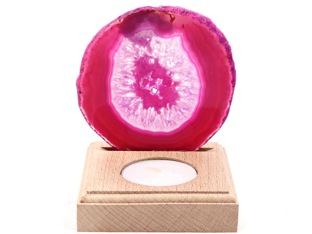 Achátový plát - svícen z achátového plátu na dřevěném podstavci