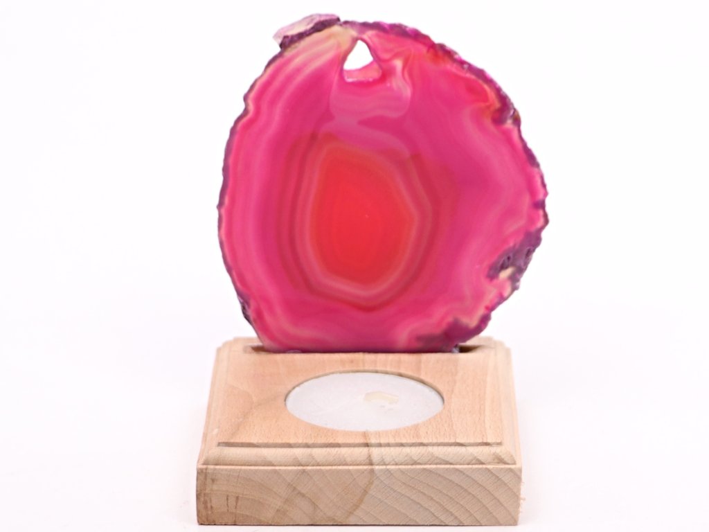 Achátový plát - svícen z achátového plátu na dřevěném podstavci
