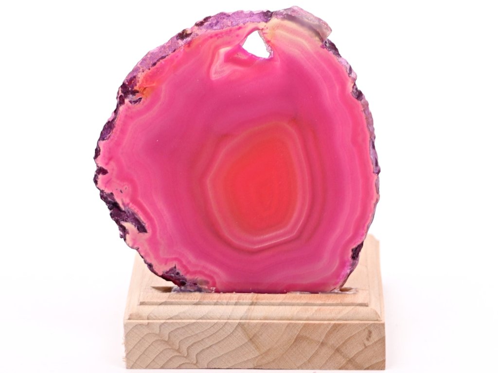 Achátové pláty jsou oboustranně leštěné. Přírodní kresba achátů vynikne při pohledu proti světlu, nebo když za něj umístíte svíčku.