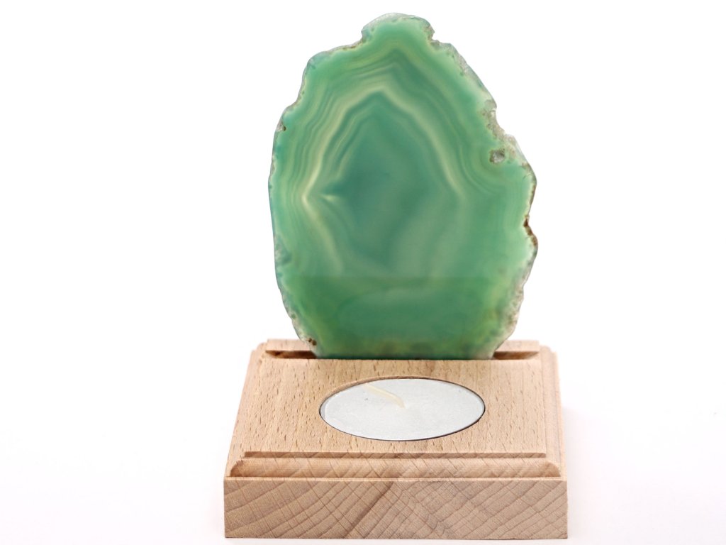 Achátový plát - svícen z achátového plátu na dřevěném podstavci