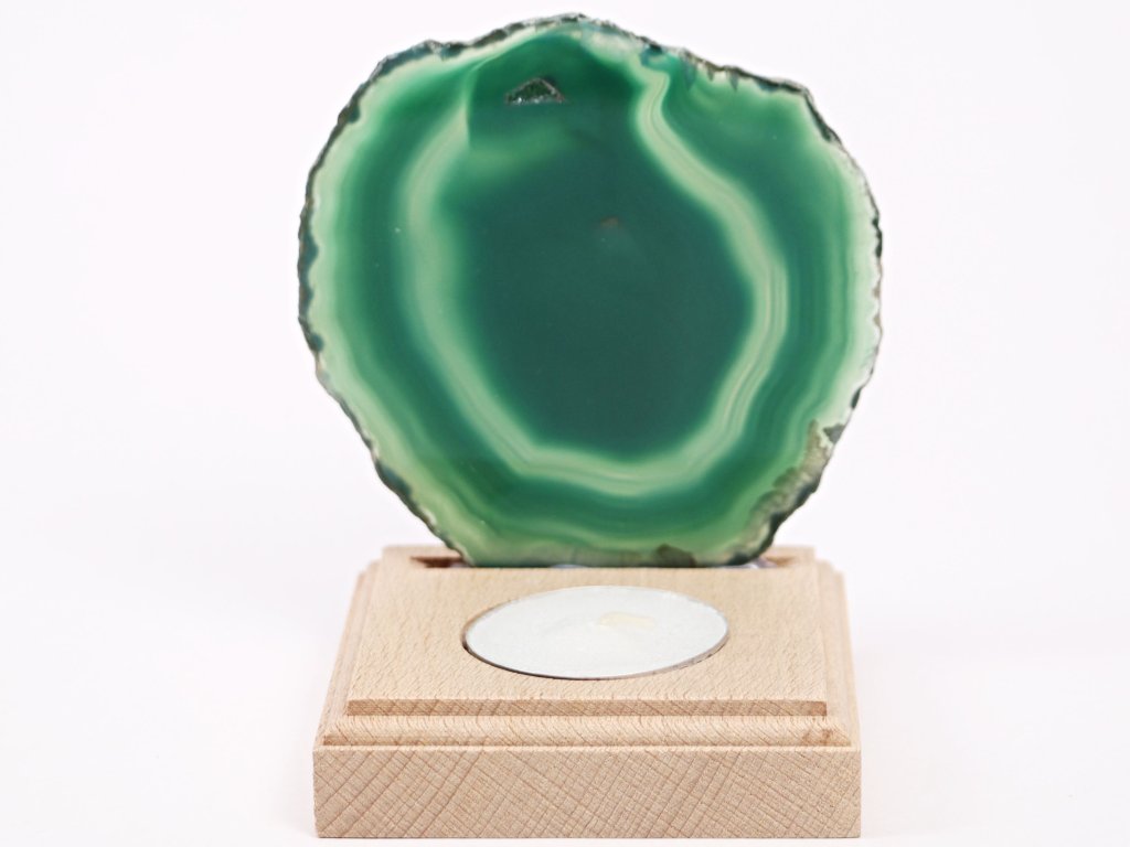 Achátový plát - svícen z achátového plátu na dřevěném podstavci