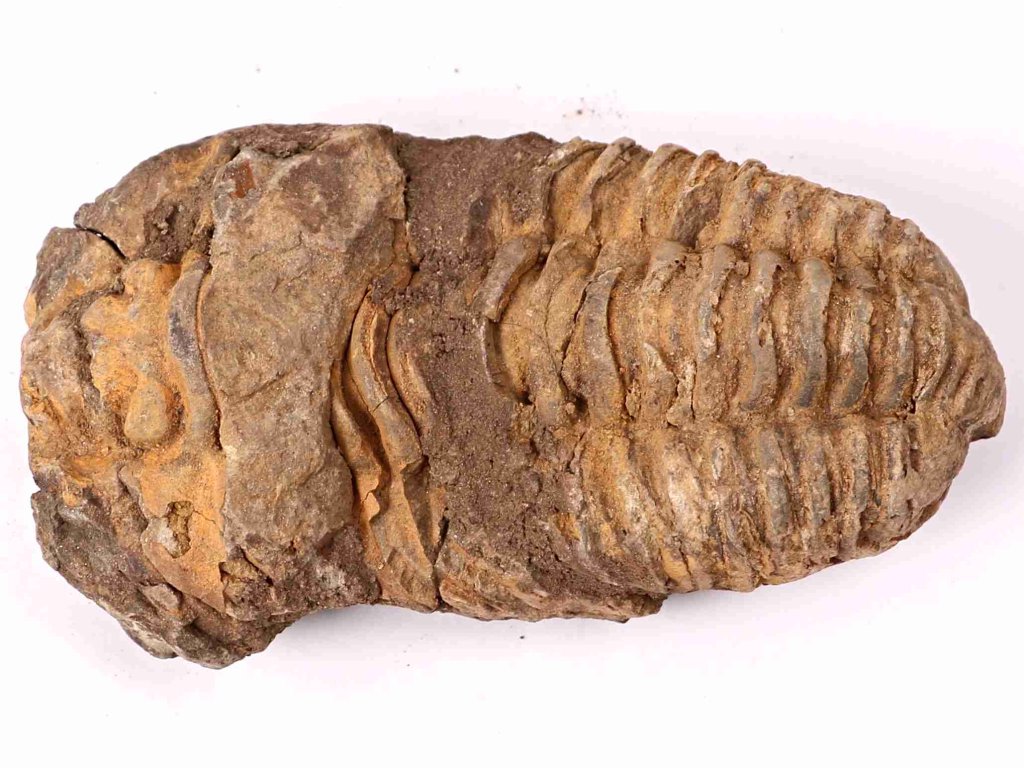 Zkamenělina trilobita rodu Calymene (Flexicalymene), pravěkého členovce podkmene trilobitomorpha.