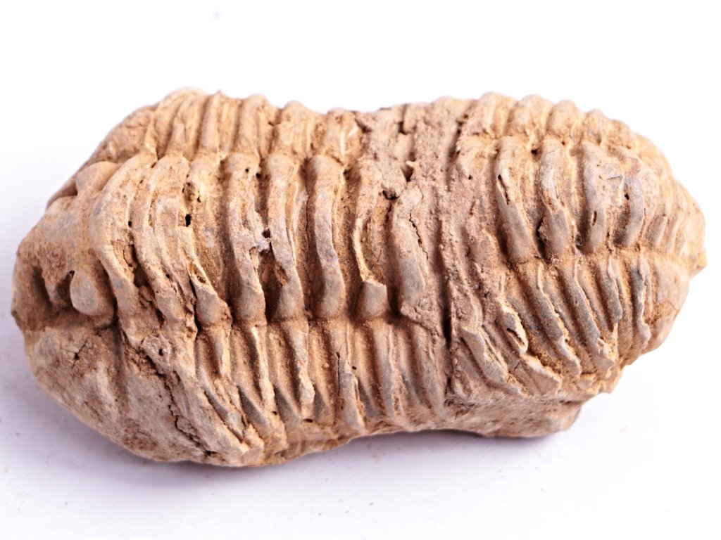 Zkamenělina trilobita rodu Calymene (Flexicalymene), pravěkého členovce podkmene trilobitomorpha.