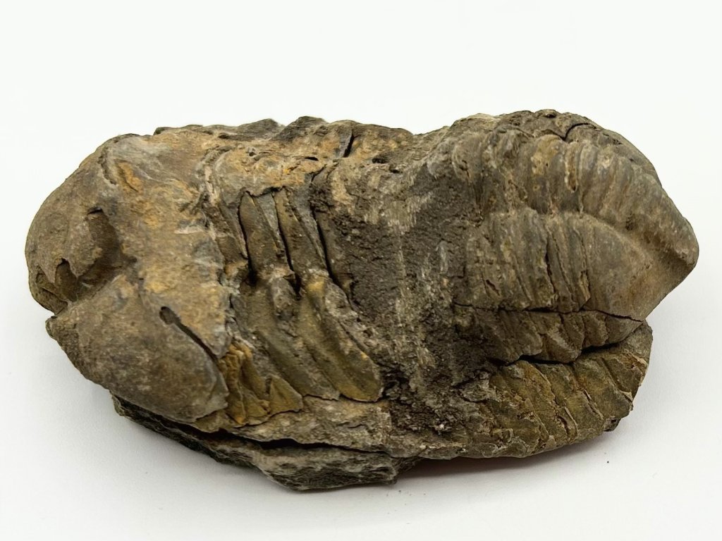 Zkamenělina trilobita rodu Calymene (Flexicalymene), pravěkého členovce podkmene trilobitomorpha.