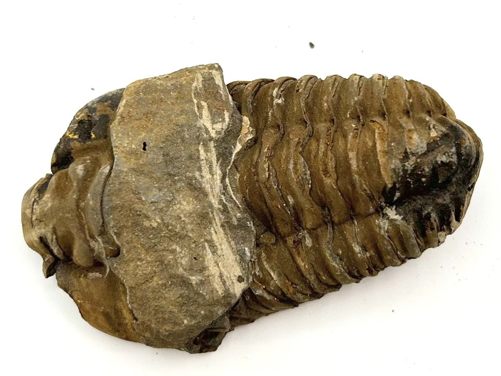 Zkamenělina trilobita rodu Calymene (Flexicalymene), pravěkého členovce podkmene trilobitomorpha.