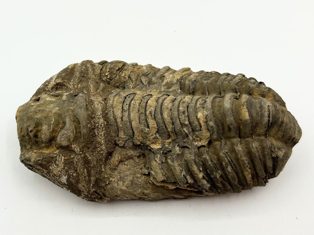 Zkamenělina trilobita rodu Calymene (Flexicalymene), pravěkého členovce podkmene trilobitomorpha.