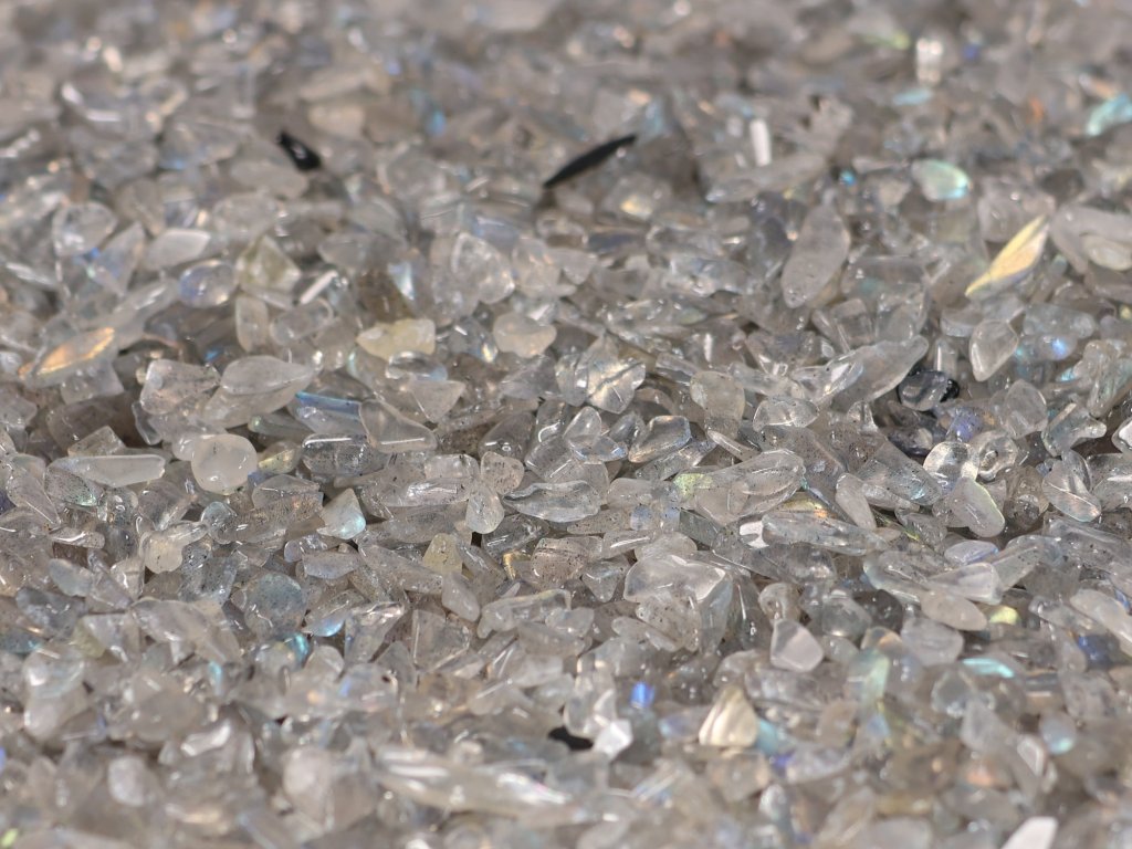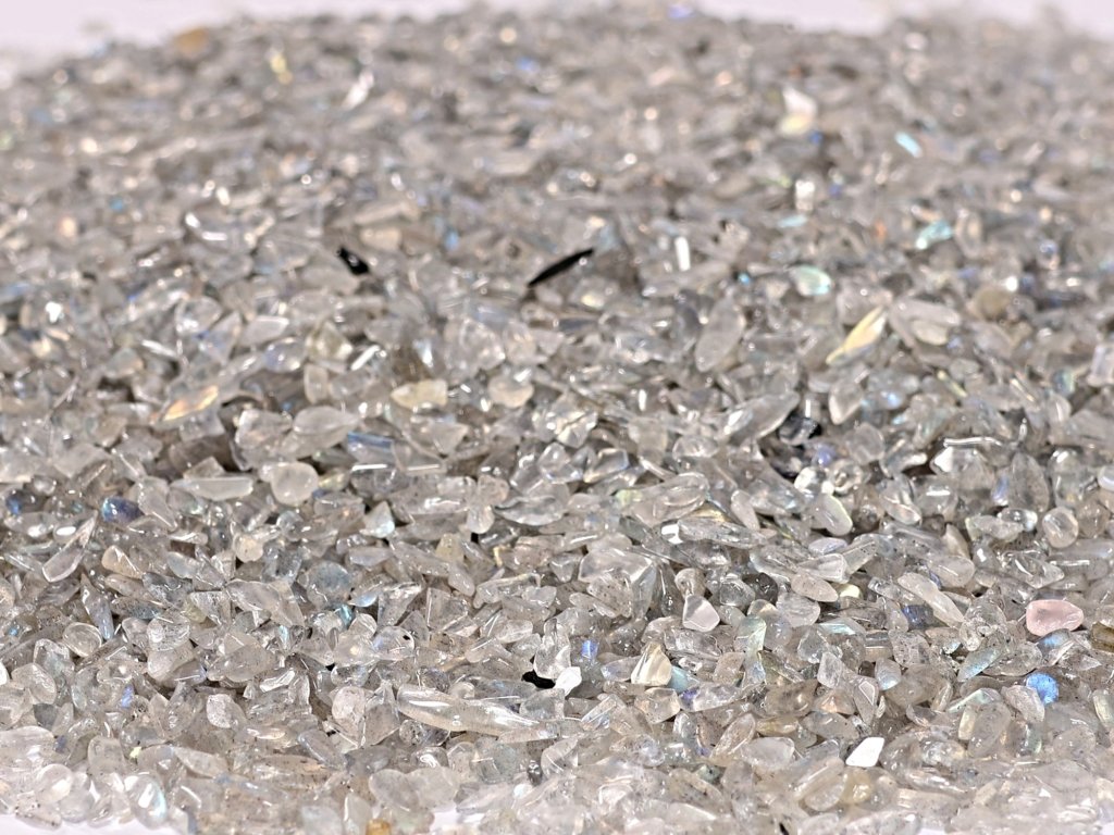 Velmi drobné tromlované kamínky labradoritu s jemnými duhovými odlesky v modrých, zelených i zlatavých tónech. Frakce XXXS (2–5 mm) je ideální pro precizní a detailní práce, kde vynikne decentní, ale magický charakter tohoto kamene.