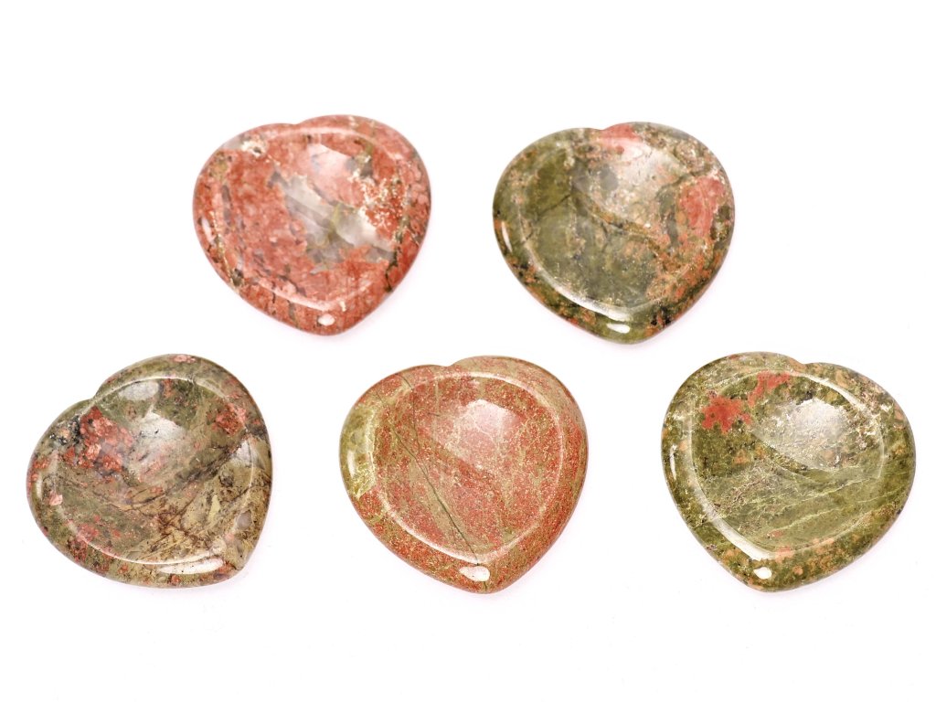 Masážní kámen Unakit hmatka srdce 45x35 mm #ZM30