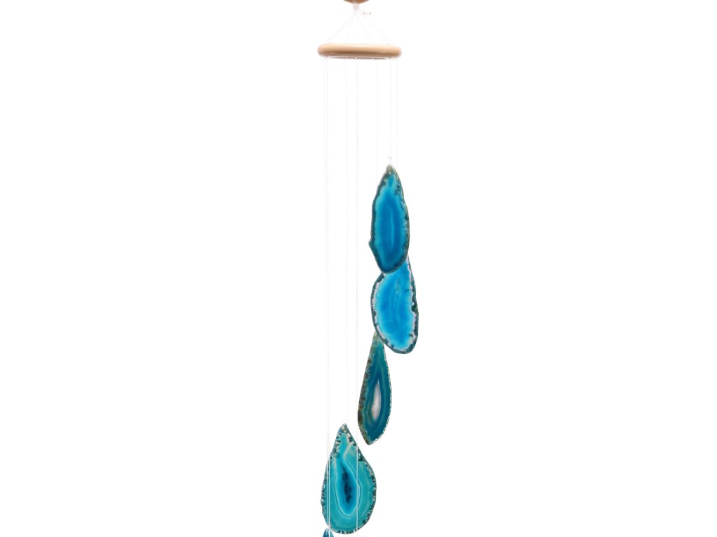 Každá zvonkohra je vyrobena z přírodního kamene, proto tvar, kresba i odstíny se mohou lišit. Obdržíte modrou achátovou zvonkohru náhodného tvaru. Achátové plátky jsou dobarvovány. Fotografie je ilustrativní.